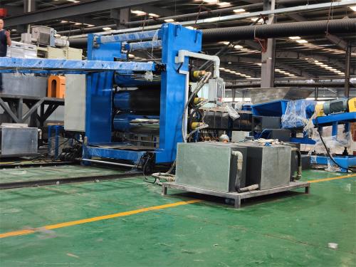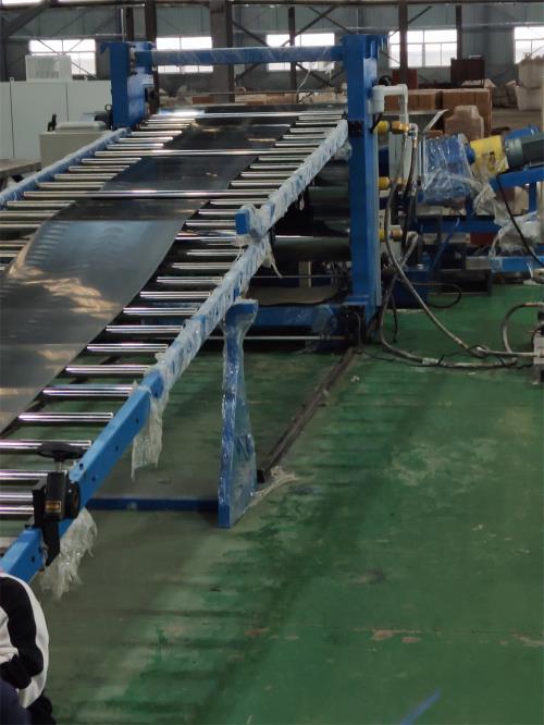 一、系統機組技術參數Ⅰ、機器顏色:主機為:公司標色;電柜為:電腦色;防護罩:黃色Ⅱ、擠出工藝:75升密煉機-——自動提升機——錐雙強制喂料機——150單螺桿擠出機——液壓板式換網系統------片材擠出模具-----三輥壓光------三輥冷卻系統-------二棍牽引-----切邊裝置-------計米器------在線剪板機------雙工位收卷機-------主機采用:PLC控制 Ⅲ、加工物料:汽車隔音片材 要 求:制品寬度:750mm 制品厚度:1.5-4.2mm 產 能:300~400公斤/小時 敲擊隔音片材生產線_蚌埠佳德智能裝備科技有限公司注意事項:取決于客戶的配方、工藝、生產條件 客戶為何購買我們設備,我們價位在行業(yè)屬于中低價格,我們設備能給客戶帶來哪里利益,我們設備能給用戶帶來以下利益:1.特點:這套設備主機是環(huán)保型;主機設備不需要接外循環(huán)水系統;自帶循環(huán)冷卻統是我公司專利產品,2.齒輪箱冷卻采用:采用環(huán)保冷卻系統(環(huán)保型:發(fā)明專利號:CN201911312134.6)不需要接外循環(huán)水冷卻,不用徘外水;采用閉環(huán)循環(huán)系統,不用擔心長時間使用水冷卻會產生水垢把冷卻器堵住,導致齒輪箱損壞 3.主機水箱冷卻系統采用:采用環(huán)保冷卻系統(環(huán)保型:發(fā)明專利號:CN201911312134.6)不需要接外循環(huán)水冷卻,不用徘外水;采用閉環(huán)循環(huán)系統 4.節(jié)能:普通筒體筒體冷卻;例如:第5區(qū)溫度超高;這是電子閥導通;第5區(qū)冷卻回水就會影響第六區(qū)和第四區(qū)的溫度下降;就會導致第四六區(qū)加溫;這種情況會一直循環(huán)出現;導致電費浪費;我們現在采用環(huán)保型就徹底解決這個問題;加我們委托第三方開發(fā)溫控模塊,溫控加熱系統比同類設備節(jié)能:10-20%電費,就是每噸能為客戶節(jié)省電費10元,每年大概能節(jié)約電費3萬
